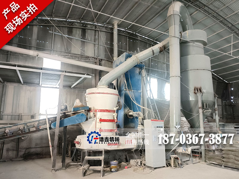 首先石灰石物料被送至儲料斗,再經(jīng)給料機將其均勻定量的送入磨機研磨室內(nèi)進行研磨;粉磨后的物料經(jīng)分級系統(tǒng)進行分級,不合格的粉體經(jīng)分級機分級后返回主機重新粉磨;符合細度的粉體隨氣流經(jīng)管道進入收塵器內(nèi)進行分離收集,收集的成品粉體經(jīng)出料口排出;整個磨粉系統(tǒng)是負壓循環(huán)狀態(tài),配置脈沖除塵裝置,環(huán)保無粉塵。